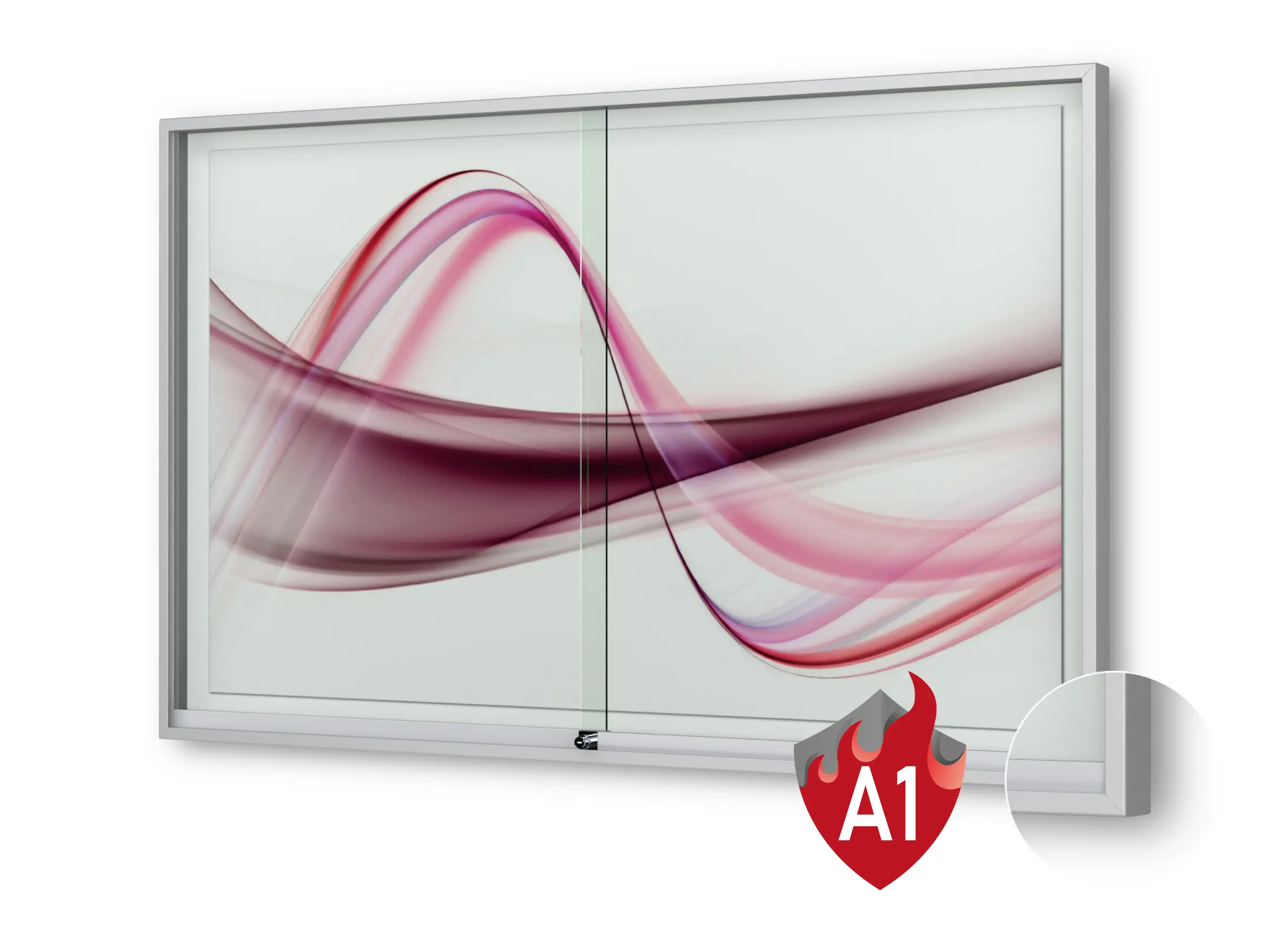 | Plakatvitrine: | Brandschutz, Montageort: Innen, Wandmontage, abschliessbar, mit Schiebetüren |